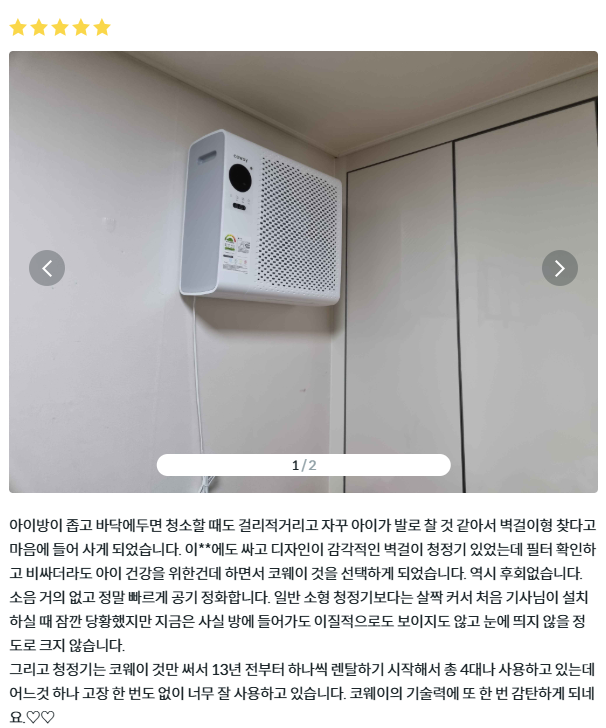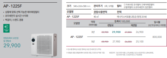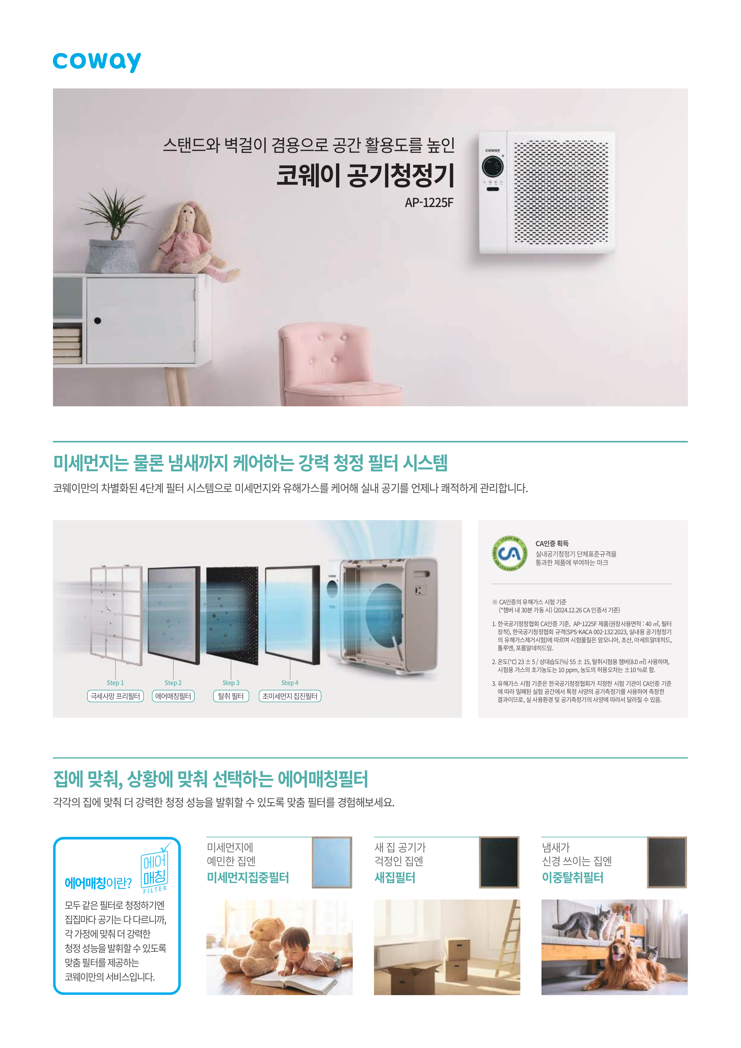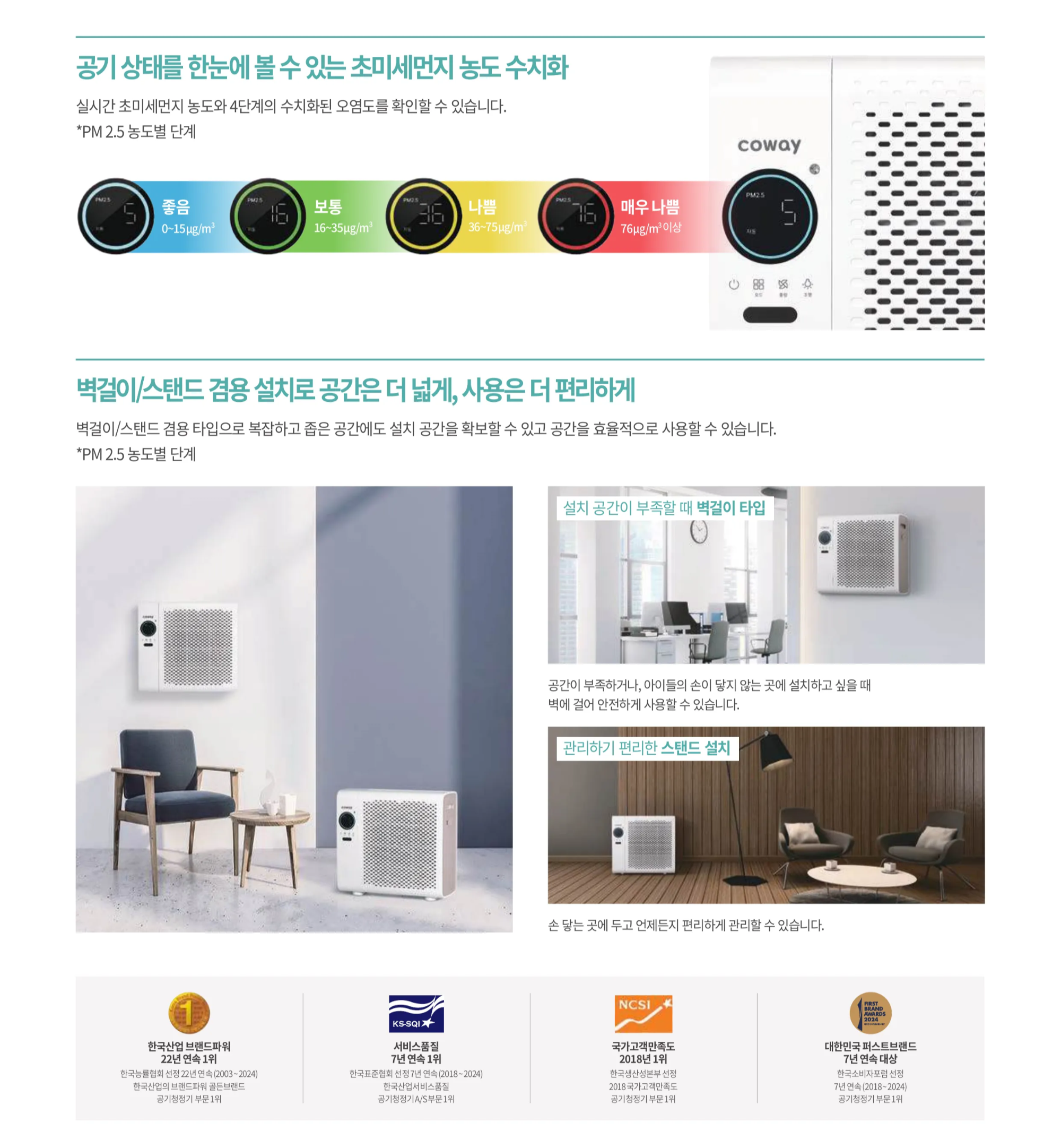 코웨이 벽걸이형 소형 공기청정기 10평형 (AP-1225F) | 코웨이 본사 접수센터