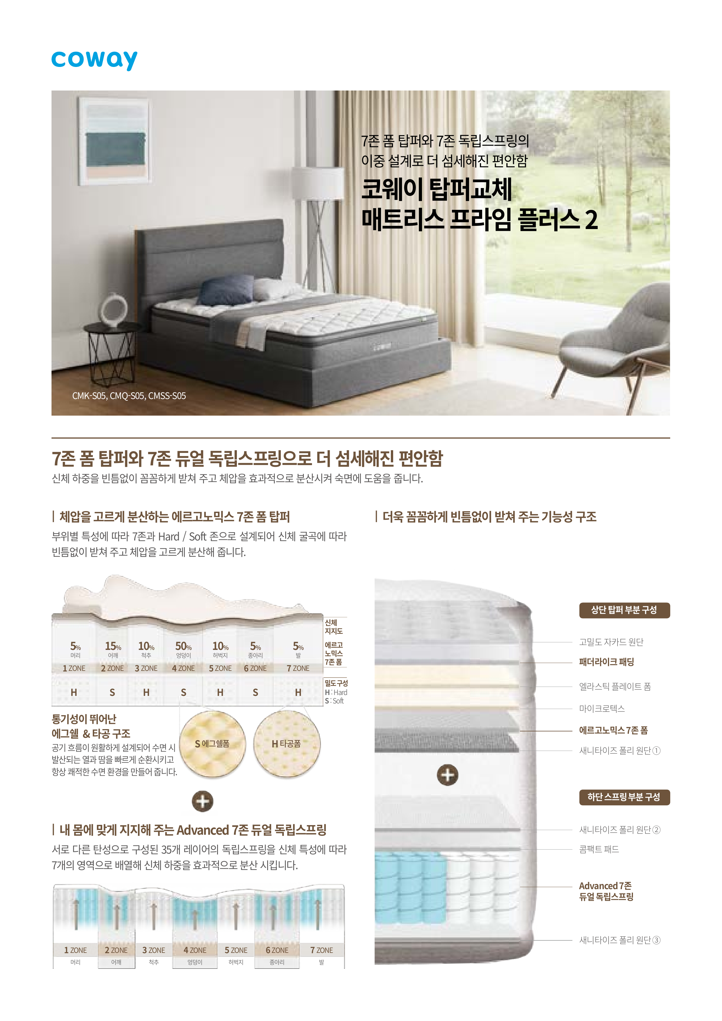- 에르고노믹스 7존 탑퍼: 신체를 더욱 섬세하고 세밀하게 지지하는 에르고노믹스 7존 폼 탑퍼를 적용했습니다.