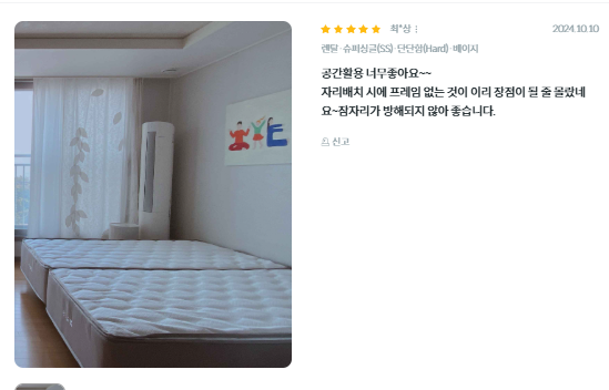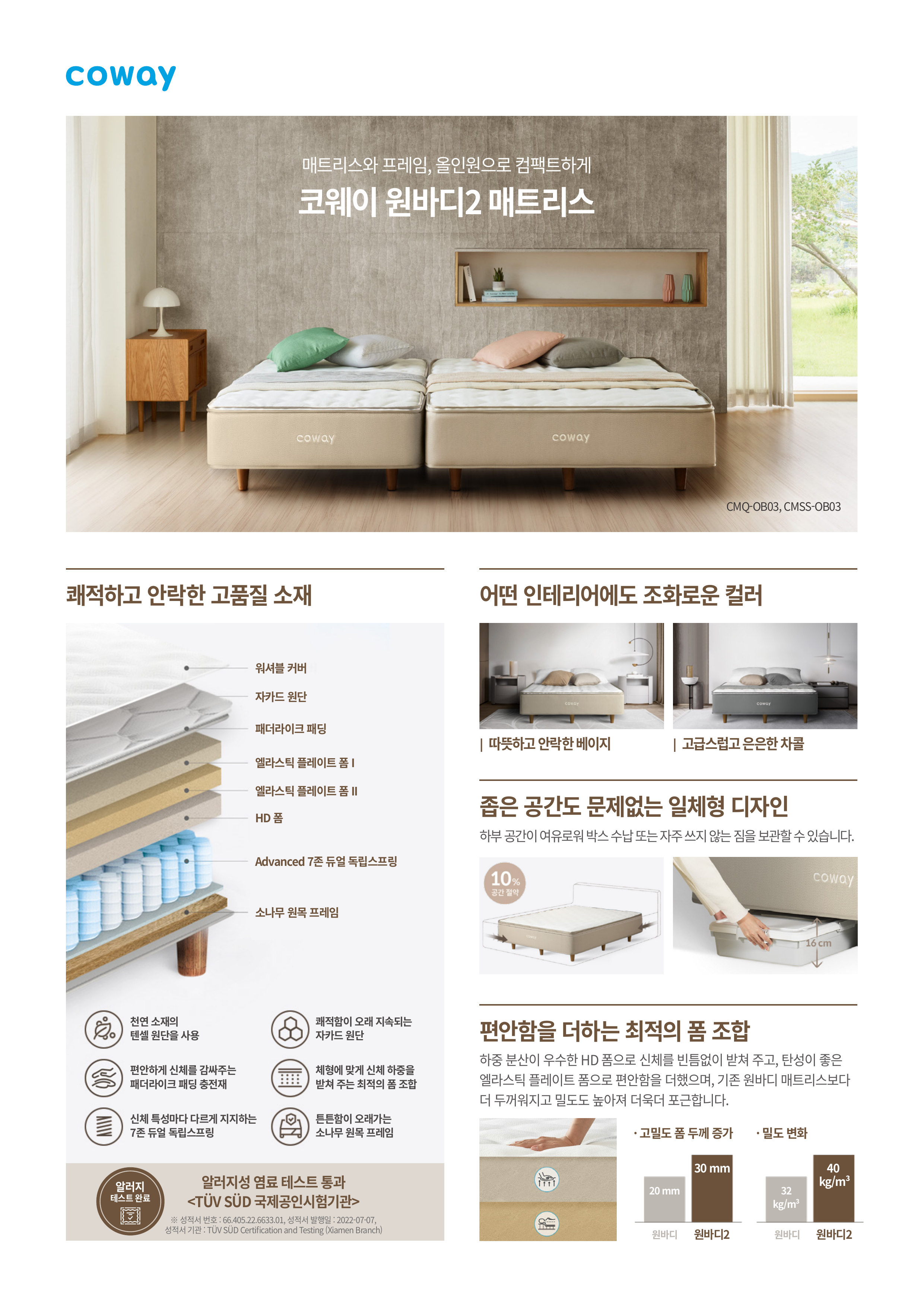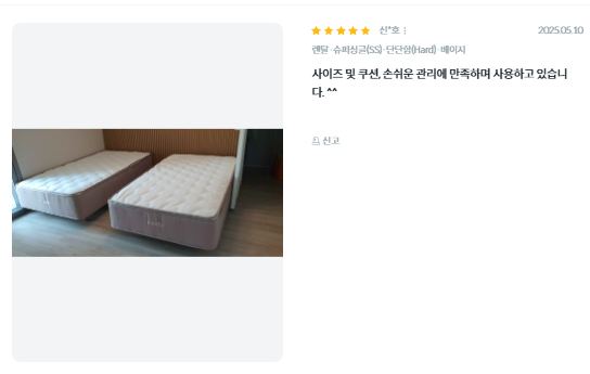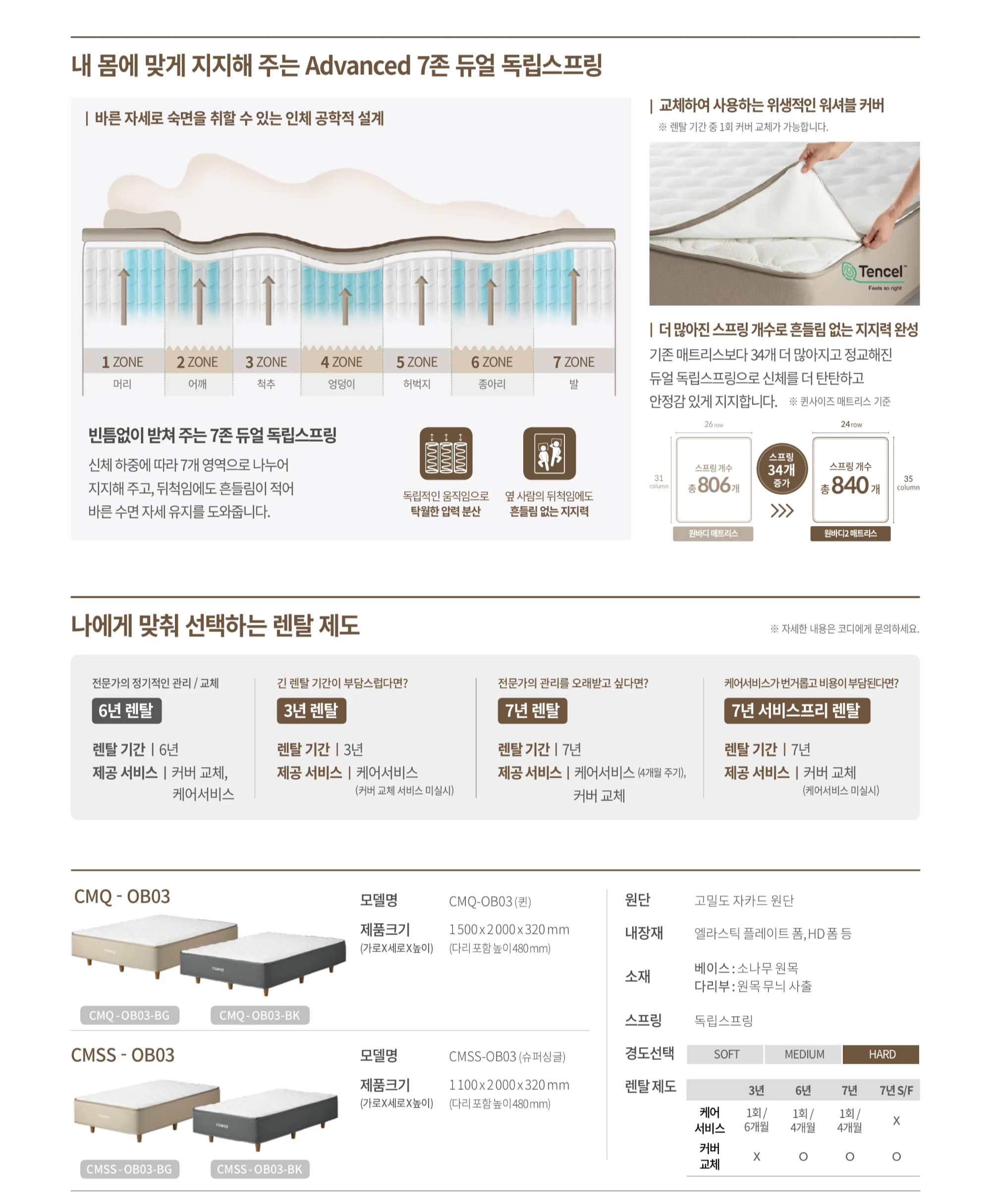 - 매트리스 컬러: 차콜(BK)과 베이지(BG) 컬러가 있습니다.