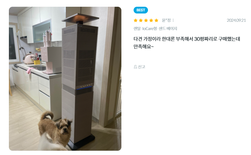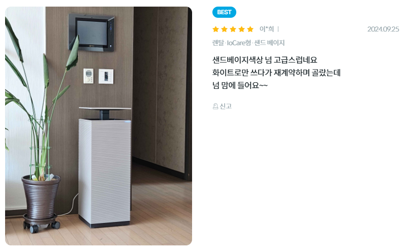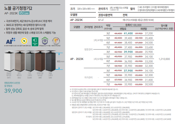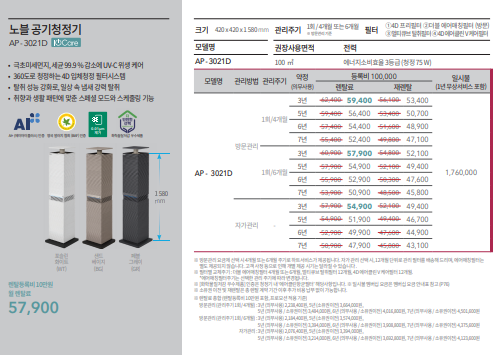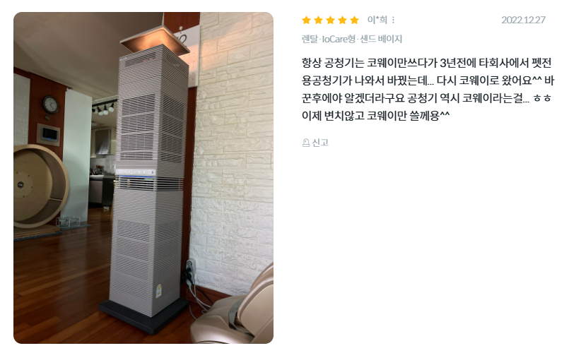 코웨이의 전문 관리 서비스인 '하트서비스'를 통해 정기적인 프리필터 세척, 주기별 필터 교체, 오염도 센서 점검,