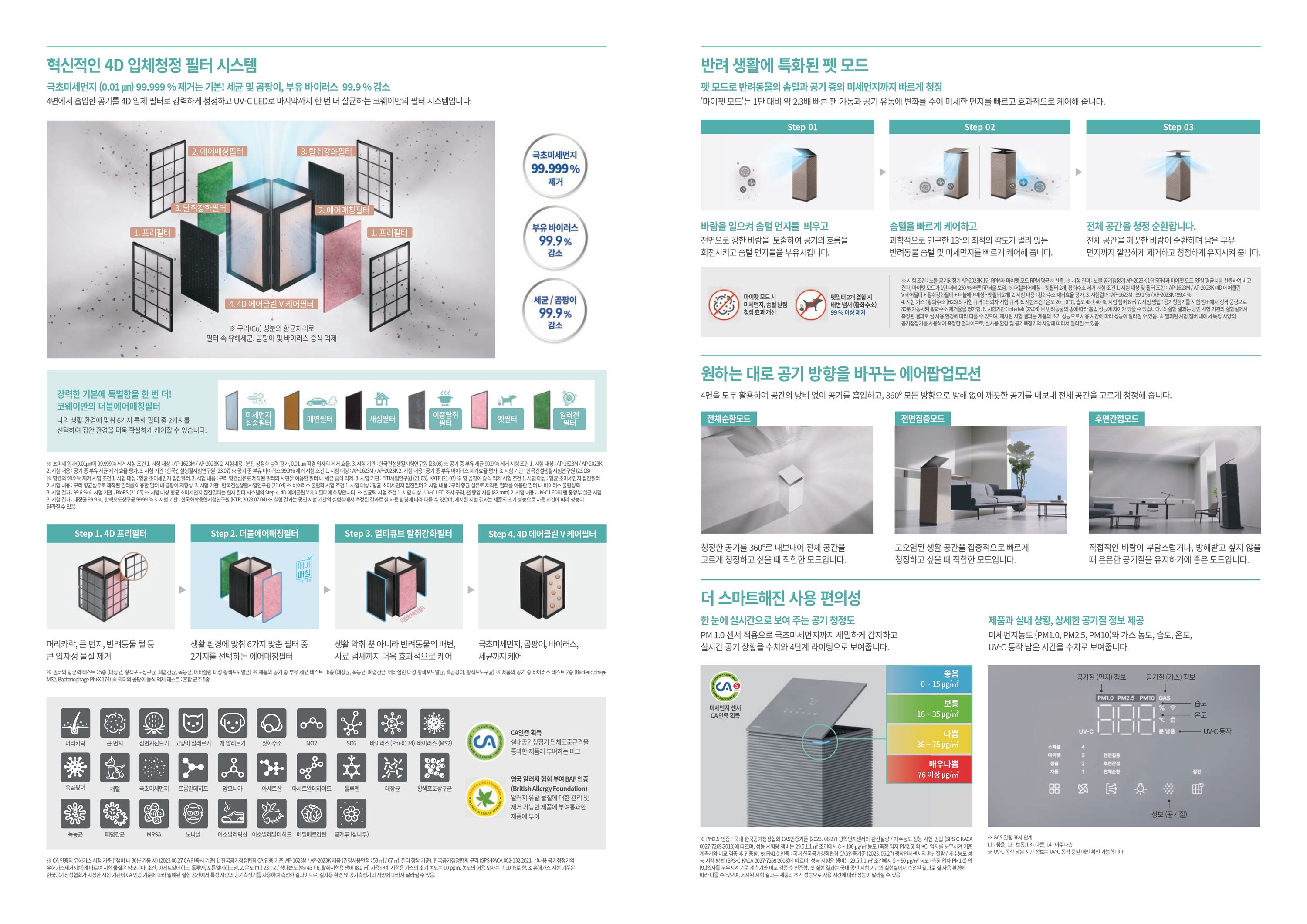 - 4D 에어클린 V 케어필터: 극초미세먼지와 바이러스까지 케어