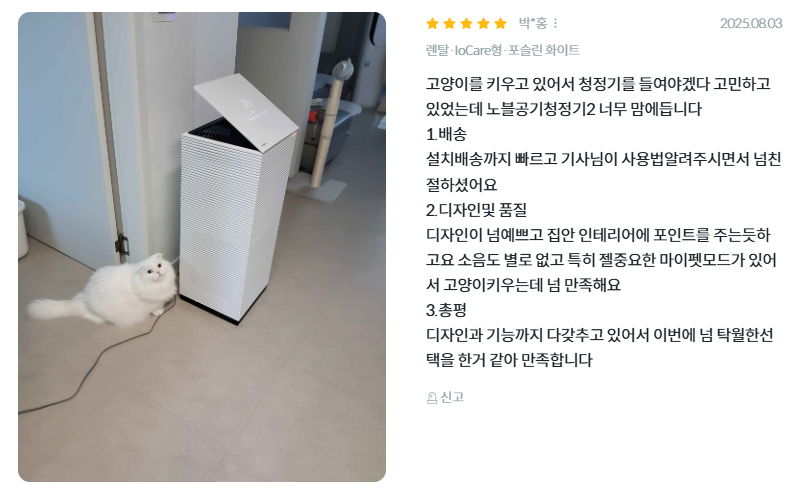 건축 미학에서 영감을 받은 아키텍처 디자인으로 제작된 노블 공기청정기2는 단순한 가전제품을 넘어 공간의 품격을 높여주는 인테리어 요소로 기능합니다.