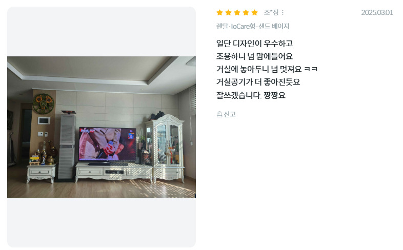 - 멀티큐브 탈취강화 필터: 생활 냄새와 유해가스를 강력하게 제거