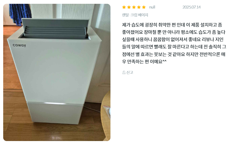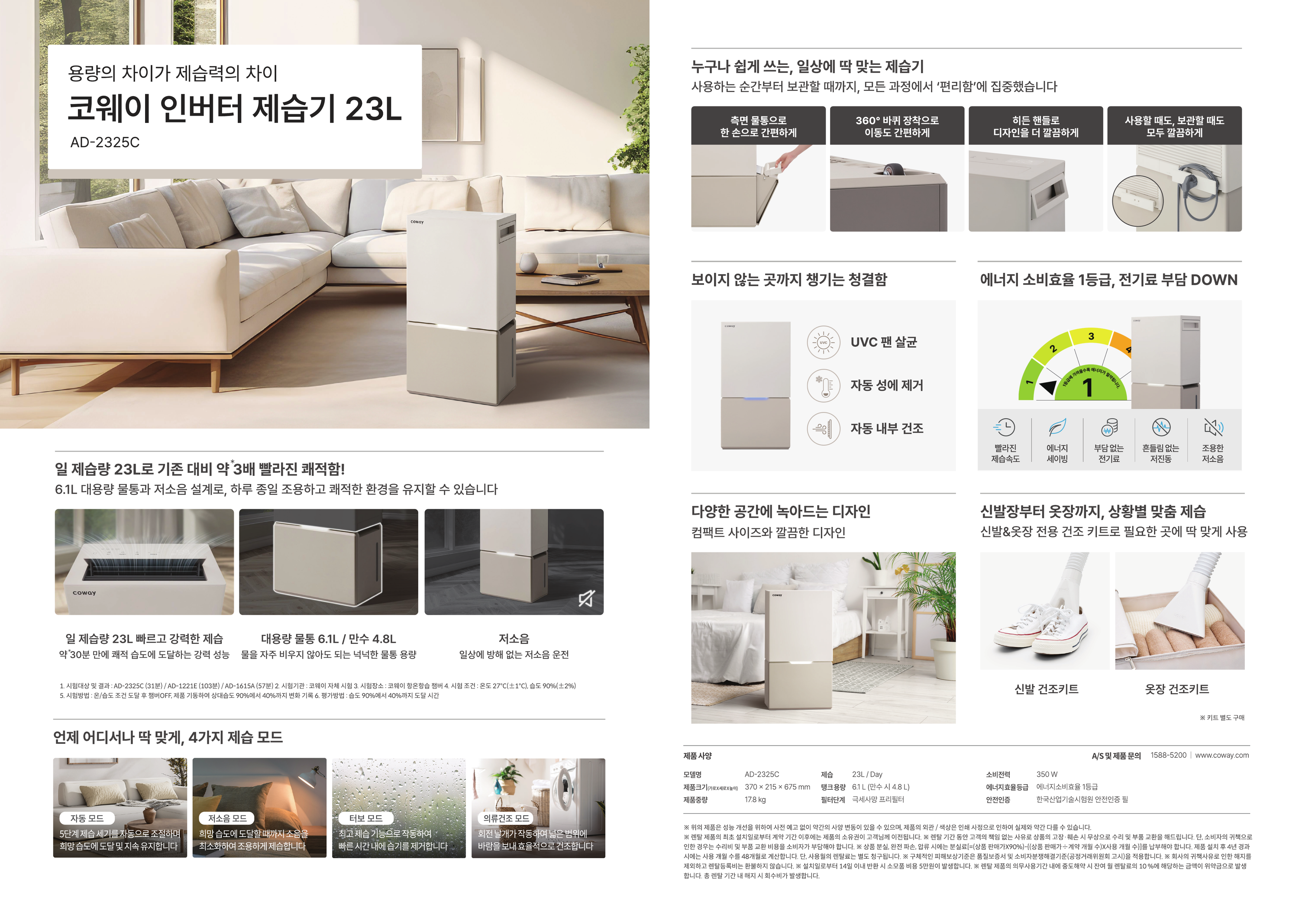 - 고효율 제습: 하루 제습량 23L로 넓은 공간의 습기를 효과적으로 제거합니다.