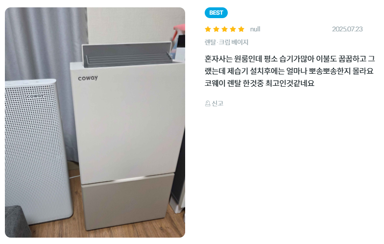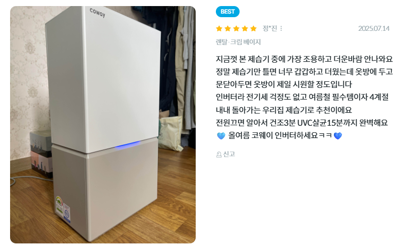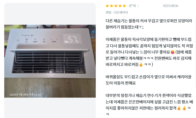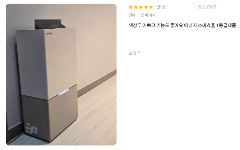 - 에너지 소비효율 등급: 1등급 (제습)