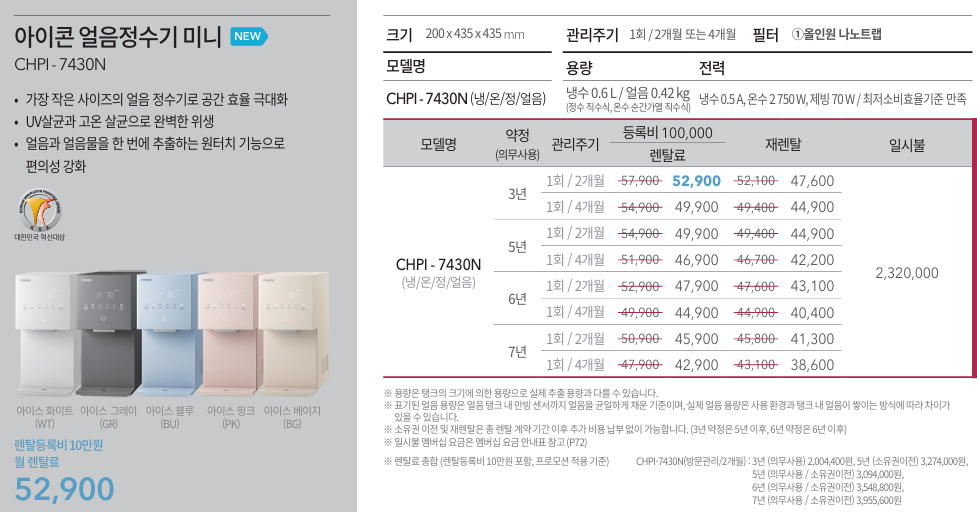 코웨이 아이콘 얼음정수기 미니(CHPI-7430N)
