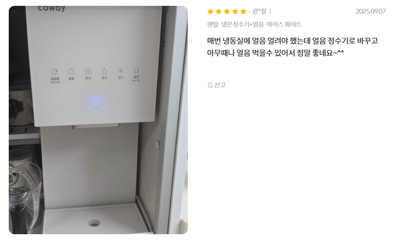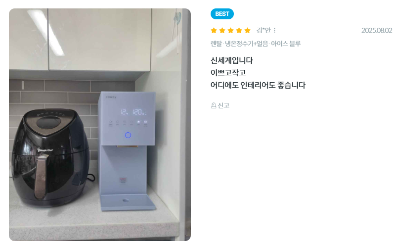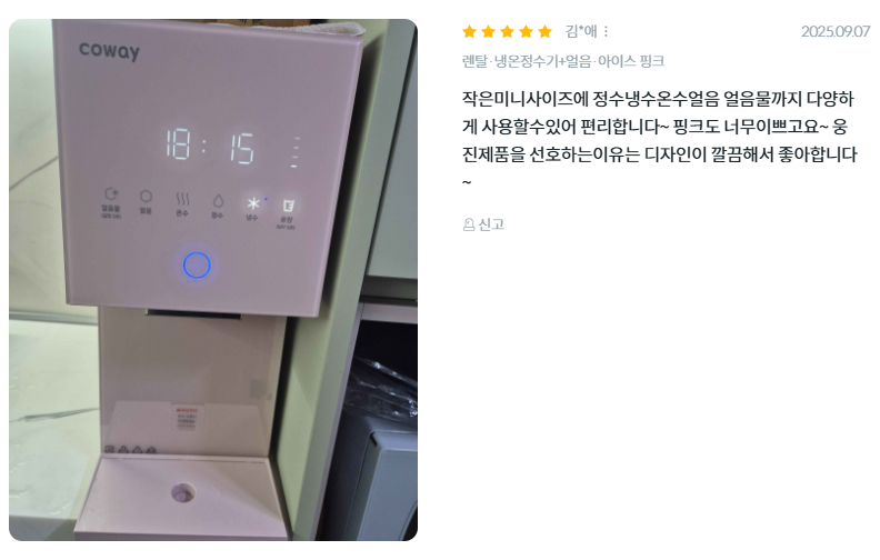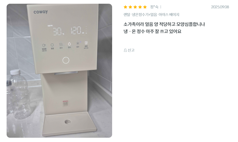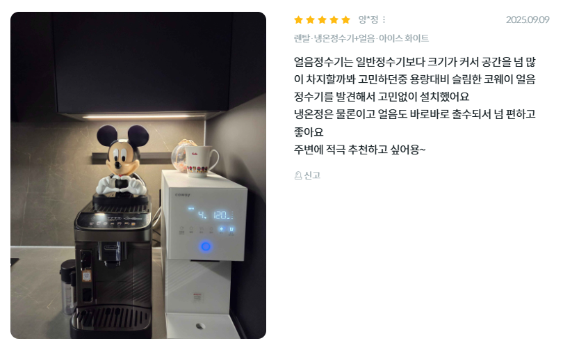 - 초소형 사이즈: 가로 20cm로 국내에서 가장 작은 얼음 정수기입니다.