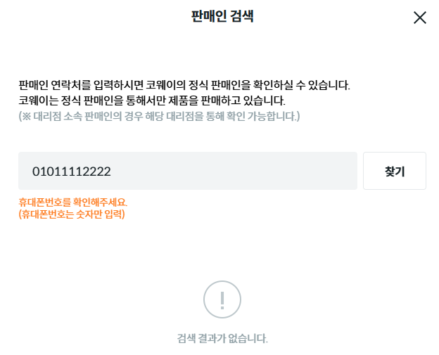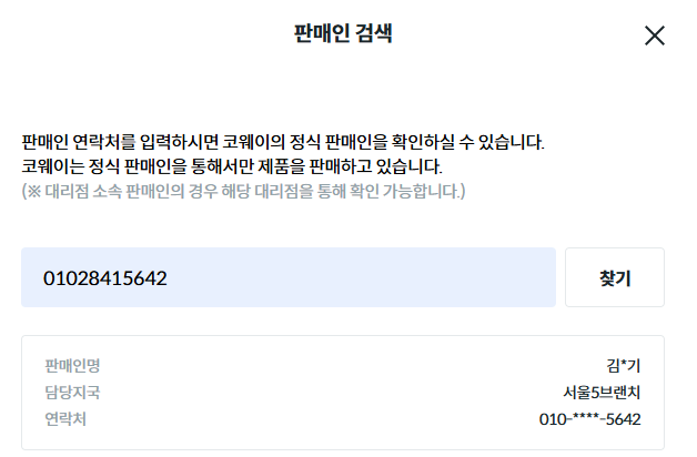 코웨이 본사 정식 판매인이라면 판매인 검색에