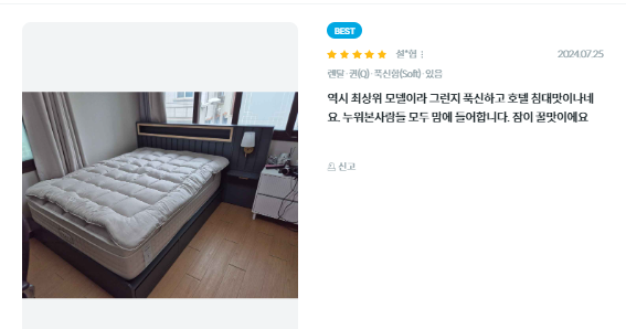- 컴포트탑퍼: 양모, 마이크로화이버로 이루어져 있습니다.