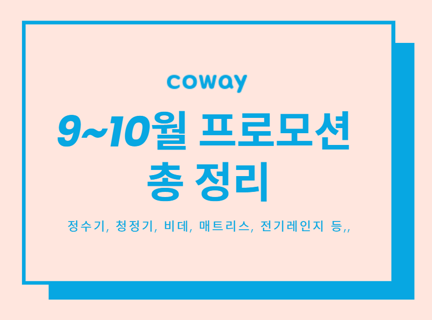 오늘은 9월 한 달간 진행되는 코웨이 프로모션 혜택과 패키지 동시 계약 혜택까지 한눈에 보기 쉽게 정리 안내드리겠습니다!!