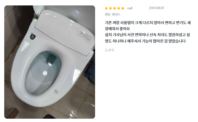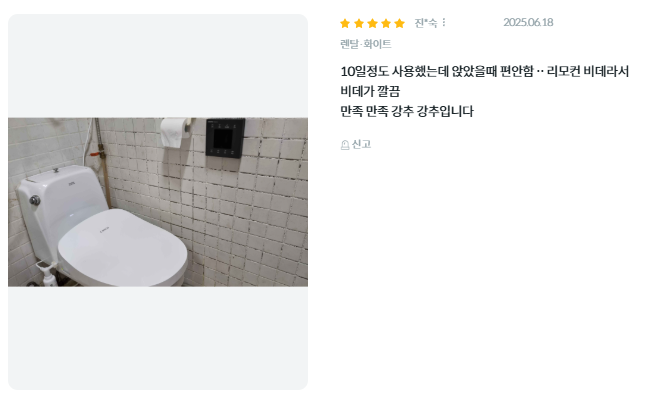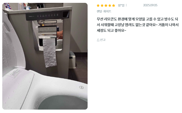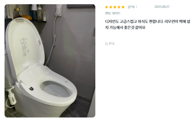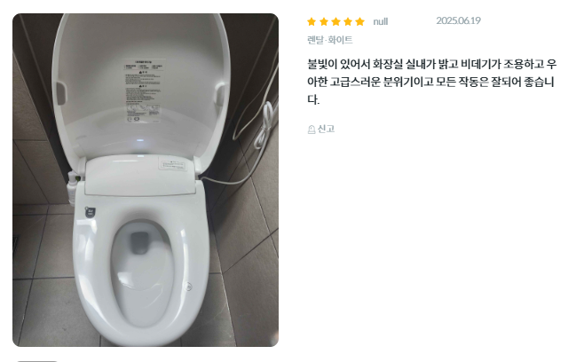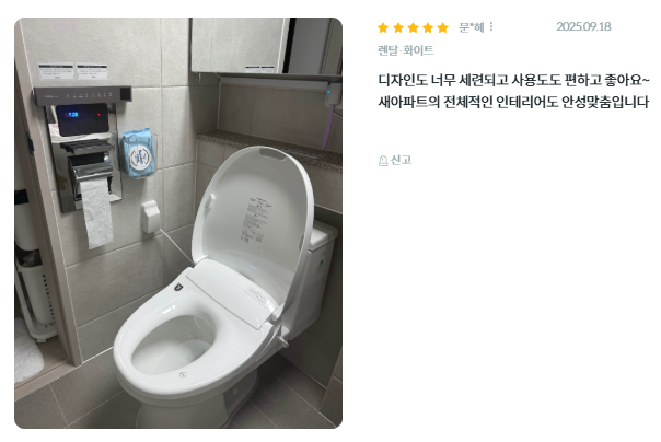 - 고객 만족도: 한국마케팅협회 선정 브랜드 고객만족도 비데 부문 6년 연속 1위