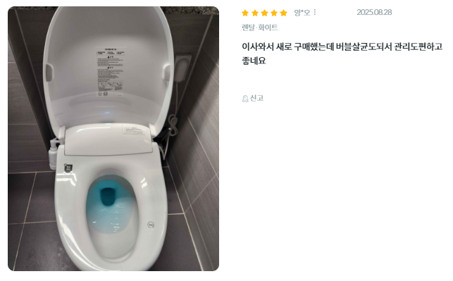 - 살균력: 한국화학융합시험연구원의 S마크(살균) 인증을 획득했으며, 살균 비데 전 모델에 해당합니다.