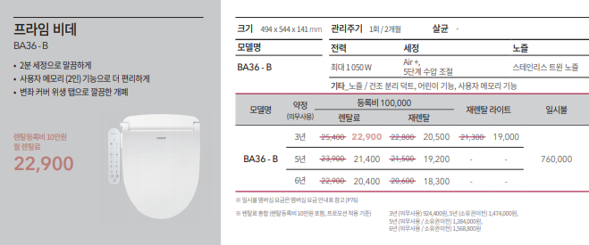 코웨이 룰루 프라임 비데 (BA36-B)