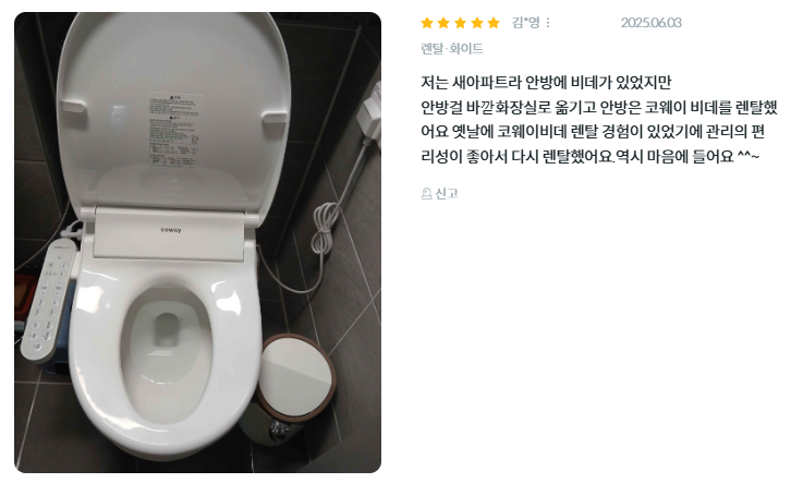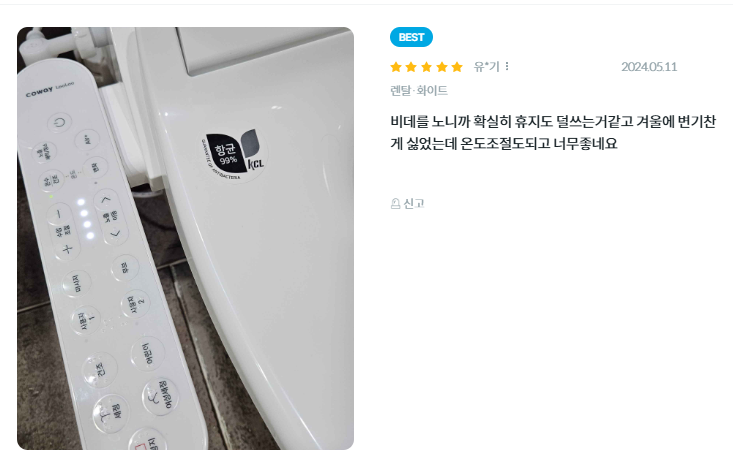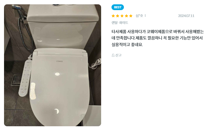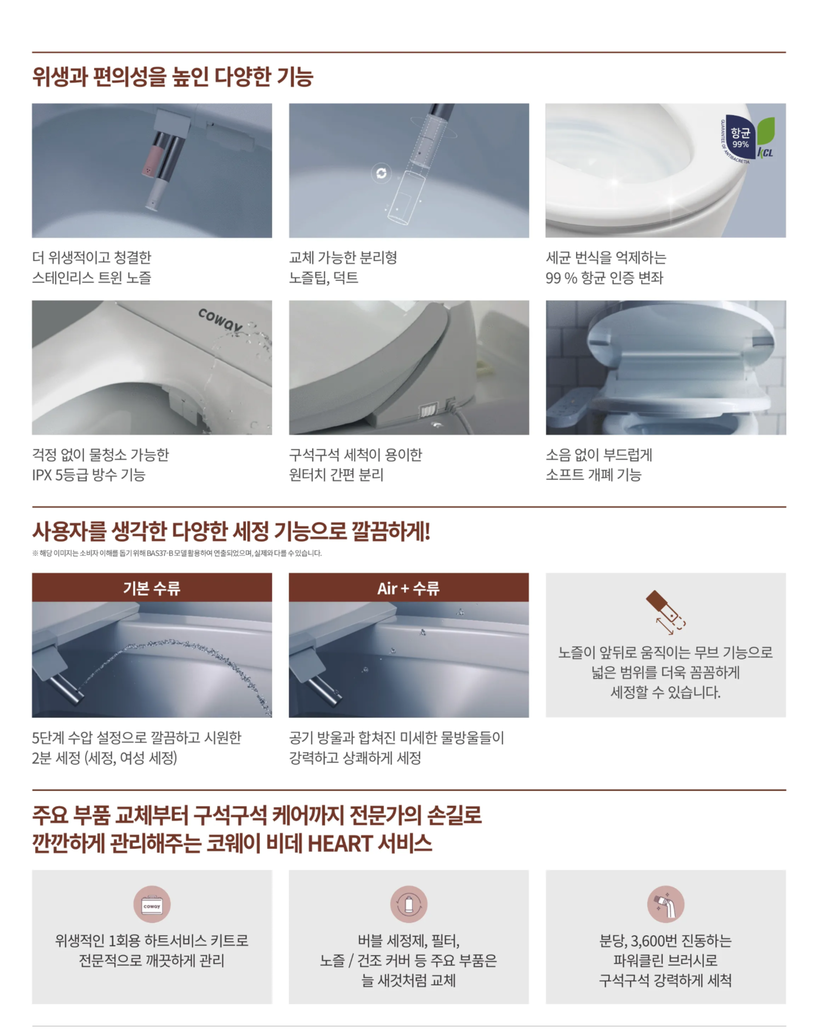 - 세정 기능: 2분 세정 기능으로 깔끔한 세정을 제공하며, Air+ 기능 및 5단계 수압 조절이 가능합니다.