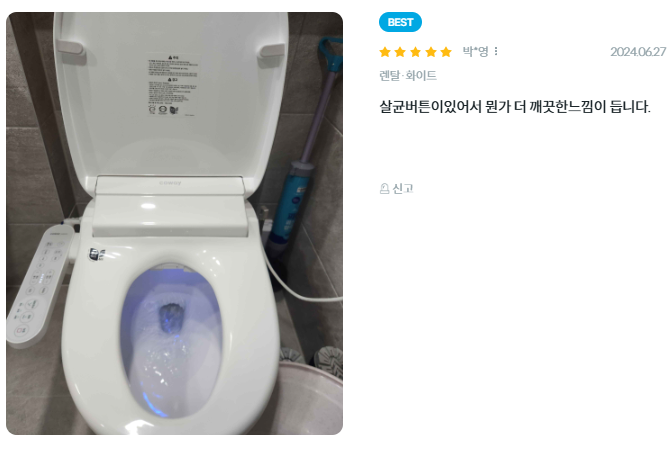 - 살균: 99% 살균 인증 모듈로 유로, 노즐, 도기 살균이 가능합니다