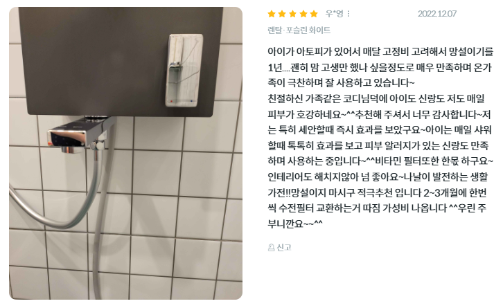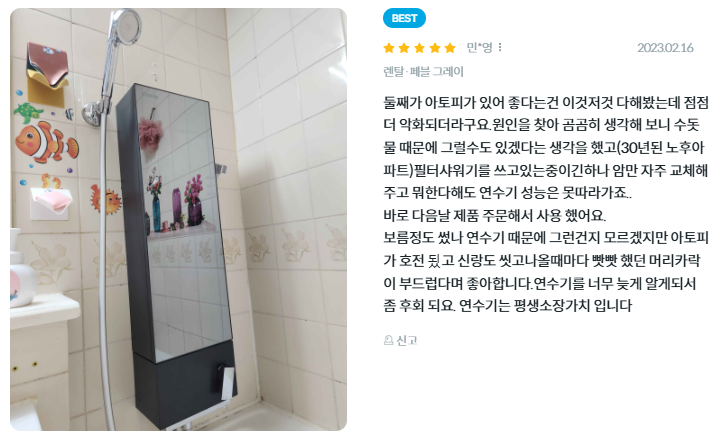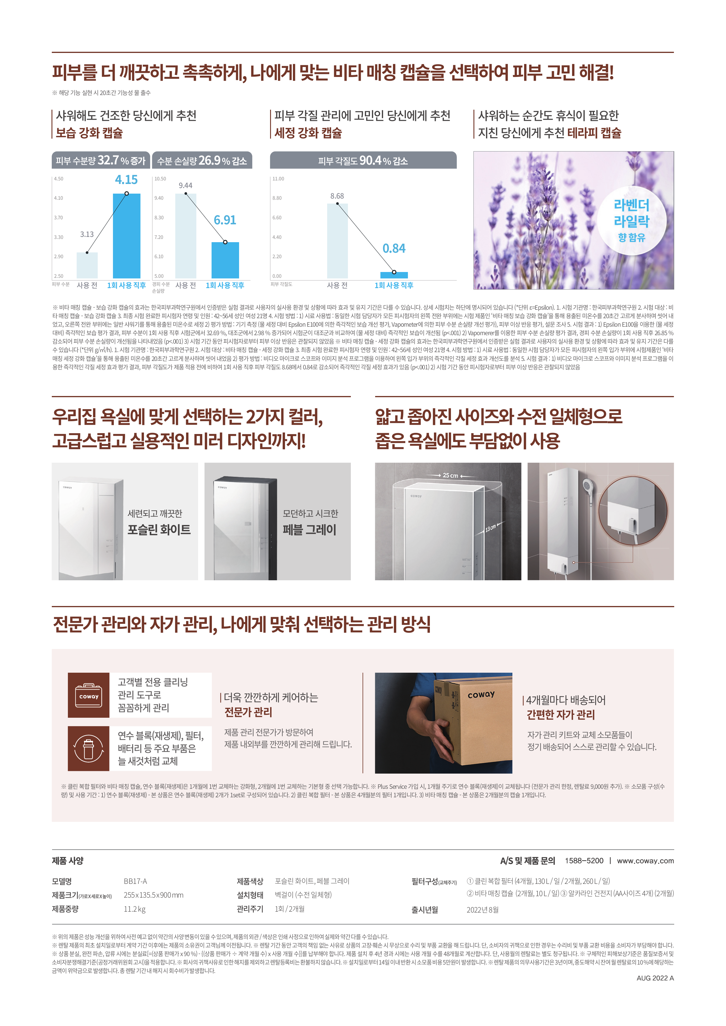 - 필터 구성: 클린복합필터와 비타매칭캡슐(보습/세정/테라피)을 사용합니다.