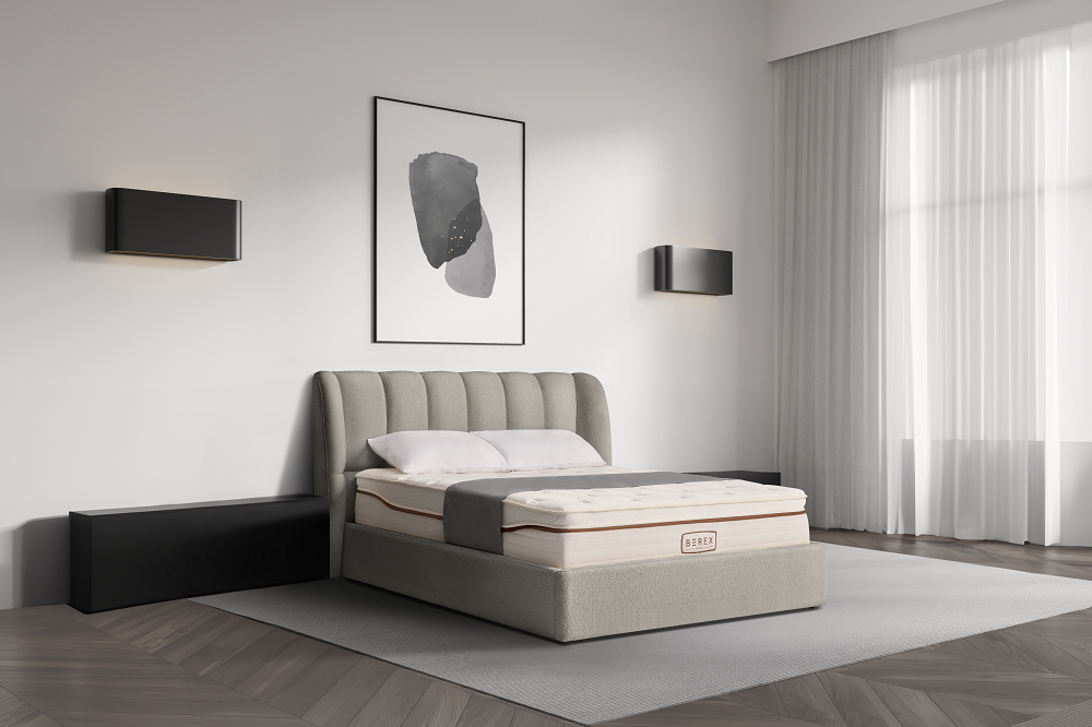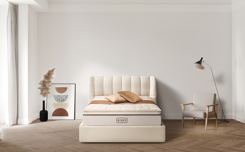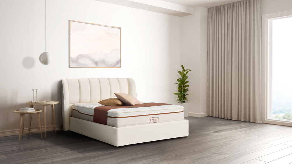코웨이 비렉스 소프트 쿠션 프레임은 부클레(bouclé) 또는 벨벳터치(velvet touch) 패브릭으로 마감된 쿠션 헤드보드가 특징인 판상형 프레임입니다. 부클레는 고급스러운 입체감과 포근한 질감을, 벨벳터치는 부드러운 감촉을 자랑합니다.