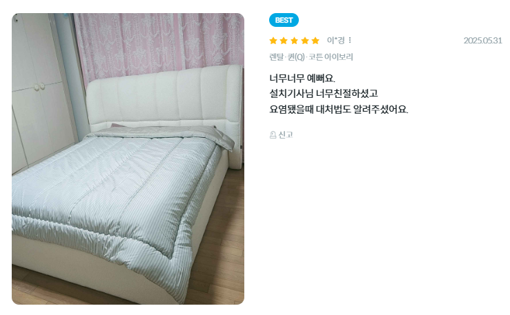 - 소프트 쿠션 헤드: 헤드 부분은 패브릭(폴리에스터), PU폼, 캐시미론, PW(합판), 소나무 원목 등으로 구성되어 포근하고 부드러운 쿠션감을 제공합니다.