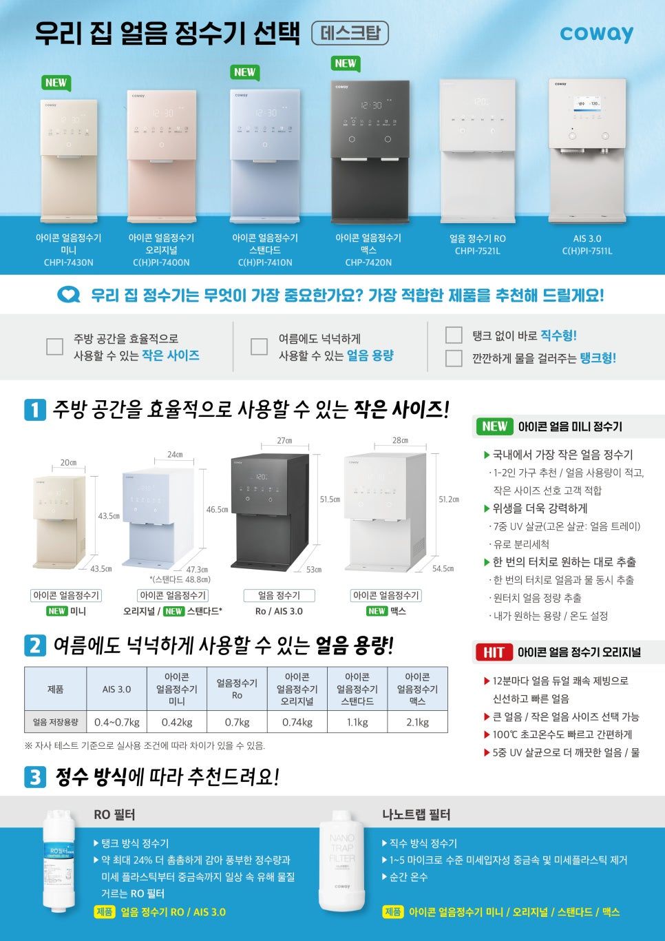 coway 신제품 얼음정수기 비교 및 안내 (2025년)