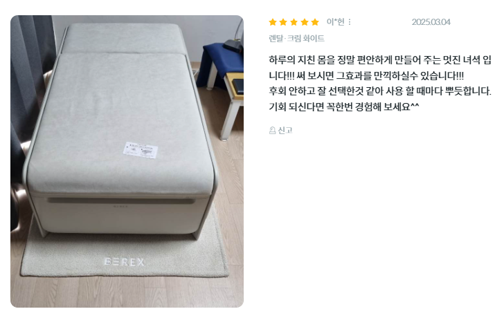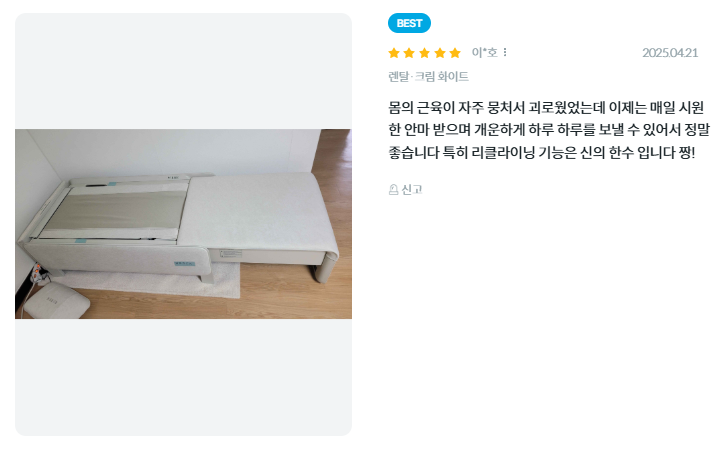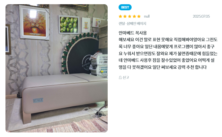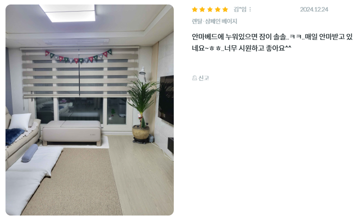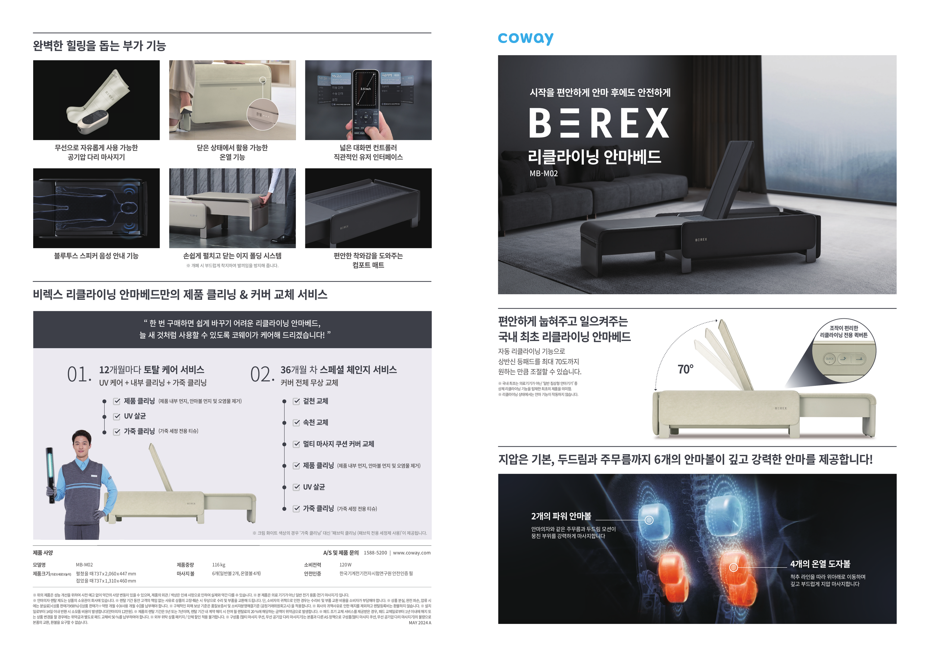 - 스페셜 케어 서비스: 위생 전문가가 안마베드 내부 청소, 발 패드 교체, UV 케어를 제공합니다.