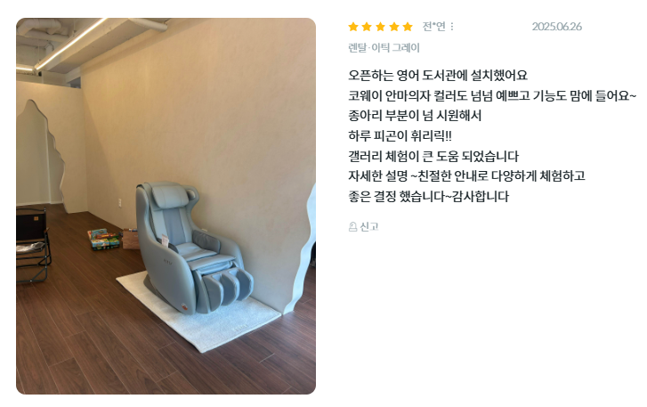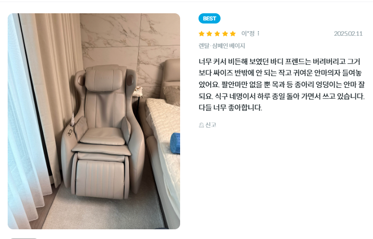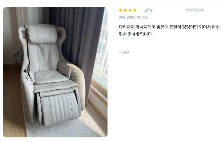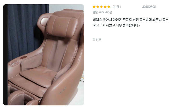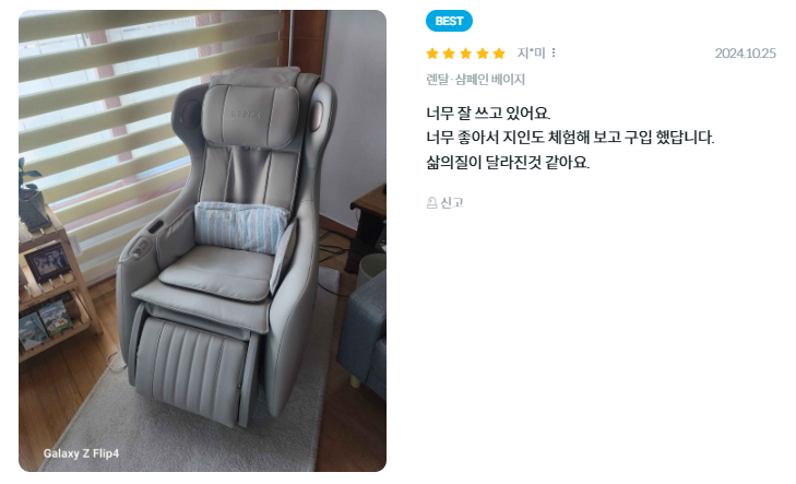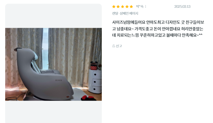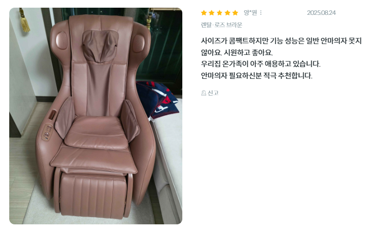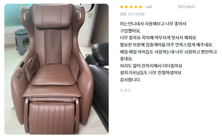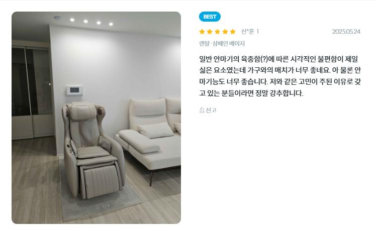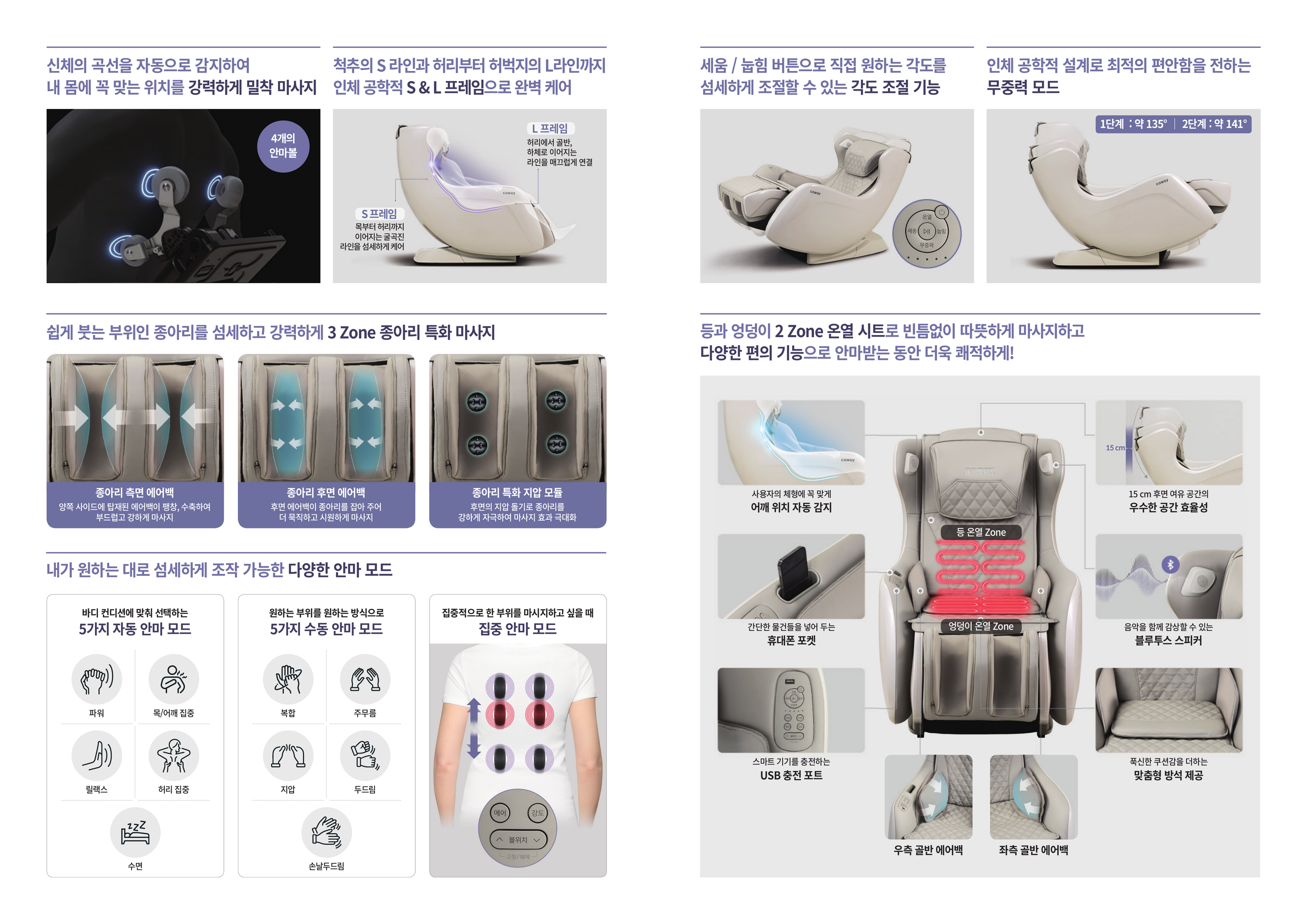 - 전문 안마 기술력: 다양한 동작이 가능한 멀티 모션 3D 안마 모듈이 적용되었습니다.