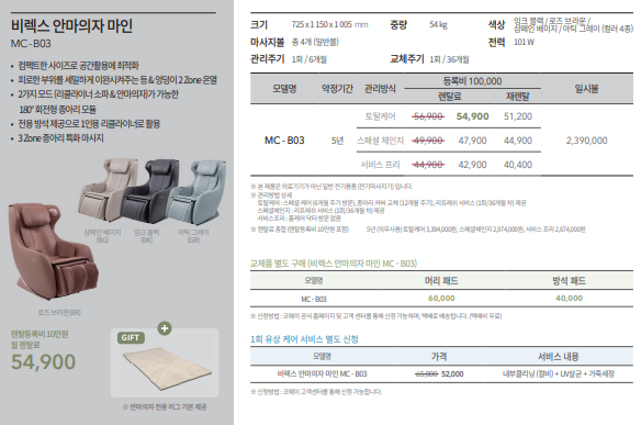 코웨이 비렉스 마인(MC-B01) 안마의자