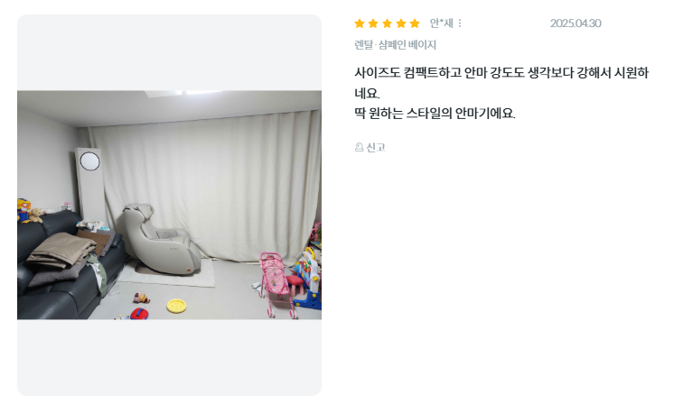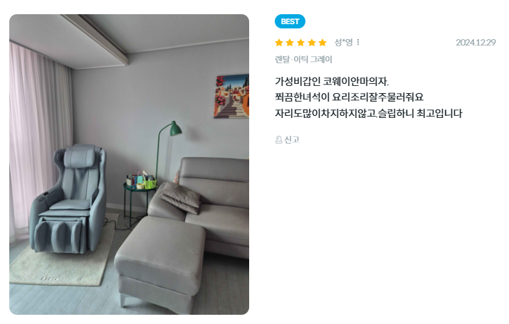- 가전·가구형 디자인: 인테리어와 휴식에 최적화된 가전·가구형 디자인이 특징입니다.