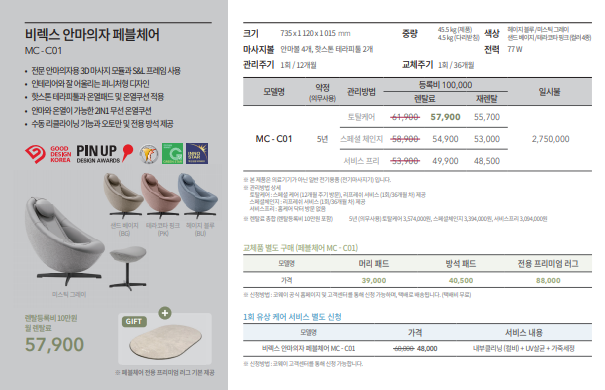 코웨이 비렉스 안마의자 페블체어 ( MC-CO1 )