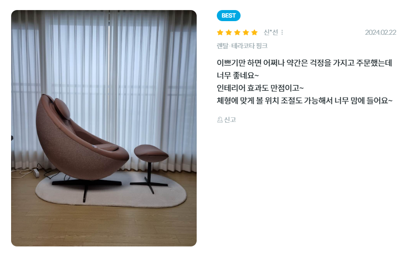 - 페블체어 전용 프리미엄 러그가 기본 제공됩니다.
