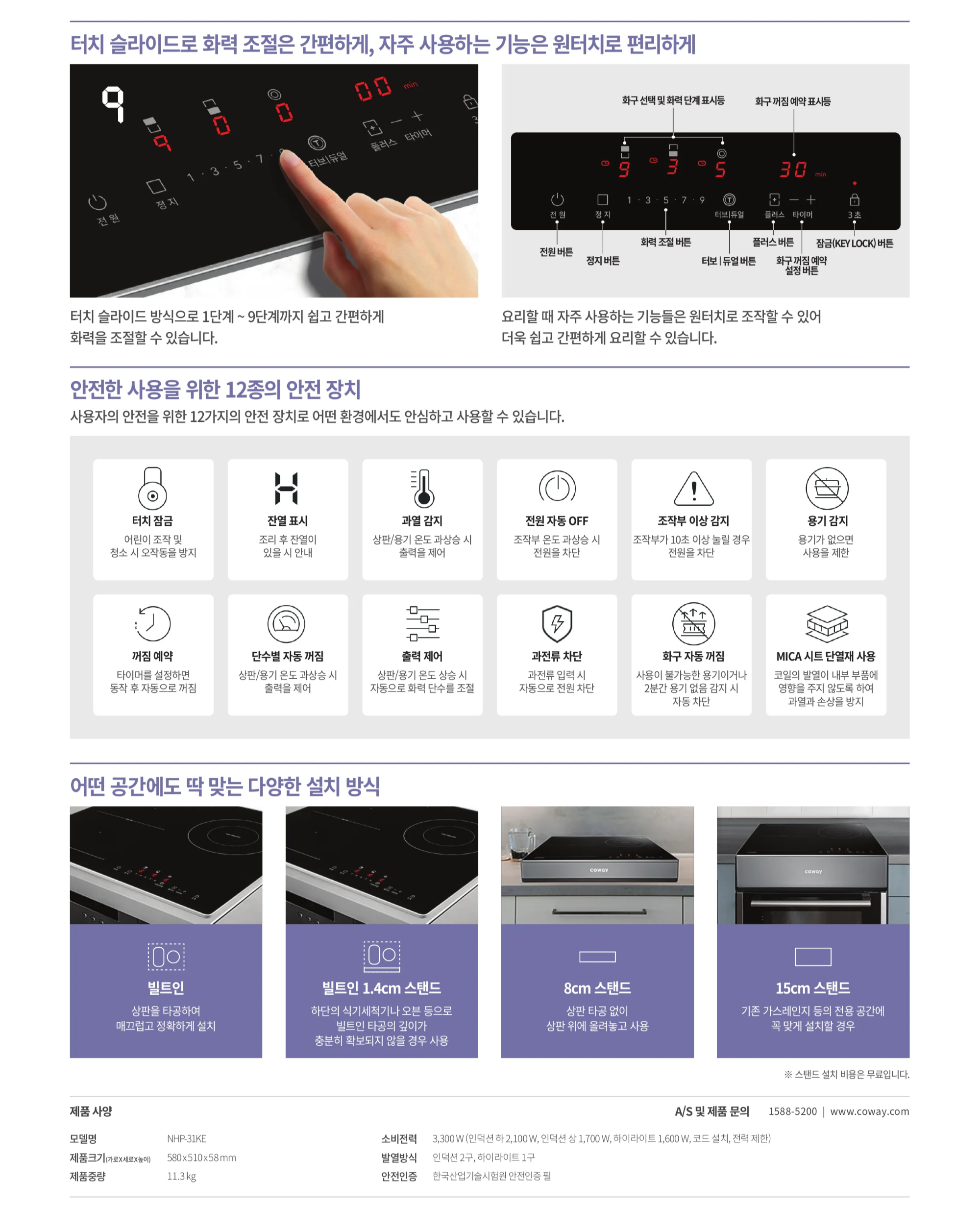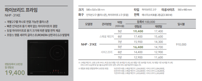 코웨이 하이브리드 프라임 전기레인지 (NHP-31KE)