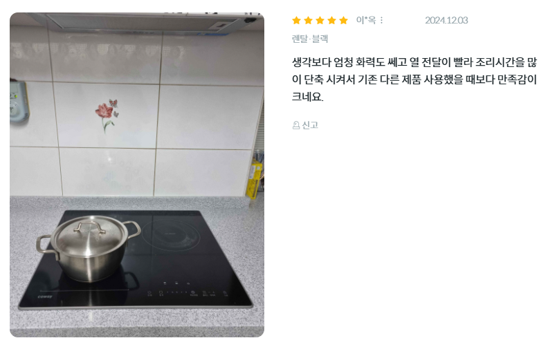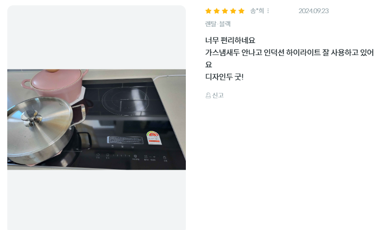 - 화구 구성: 인덕션 2구 (플러스존 포함)와 하이라이트 1구 (듀얼)로 이루어져 있습니다.