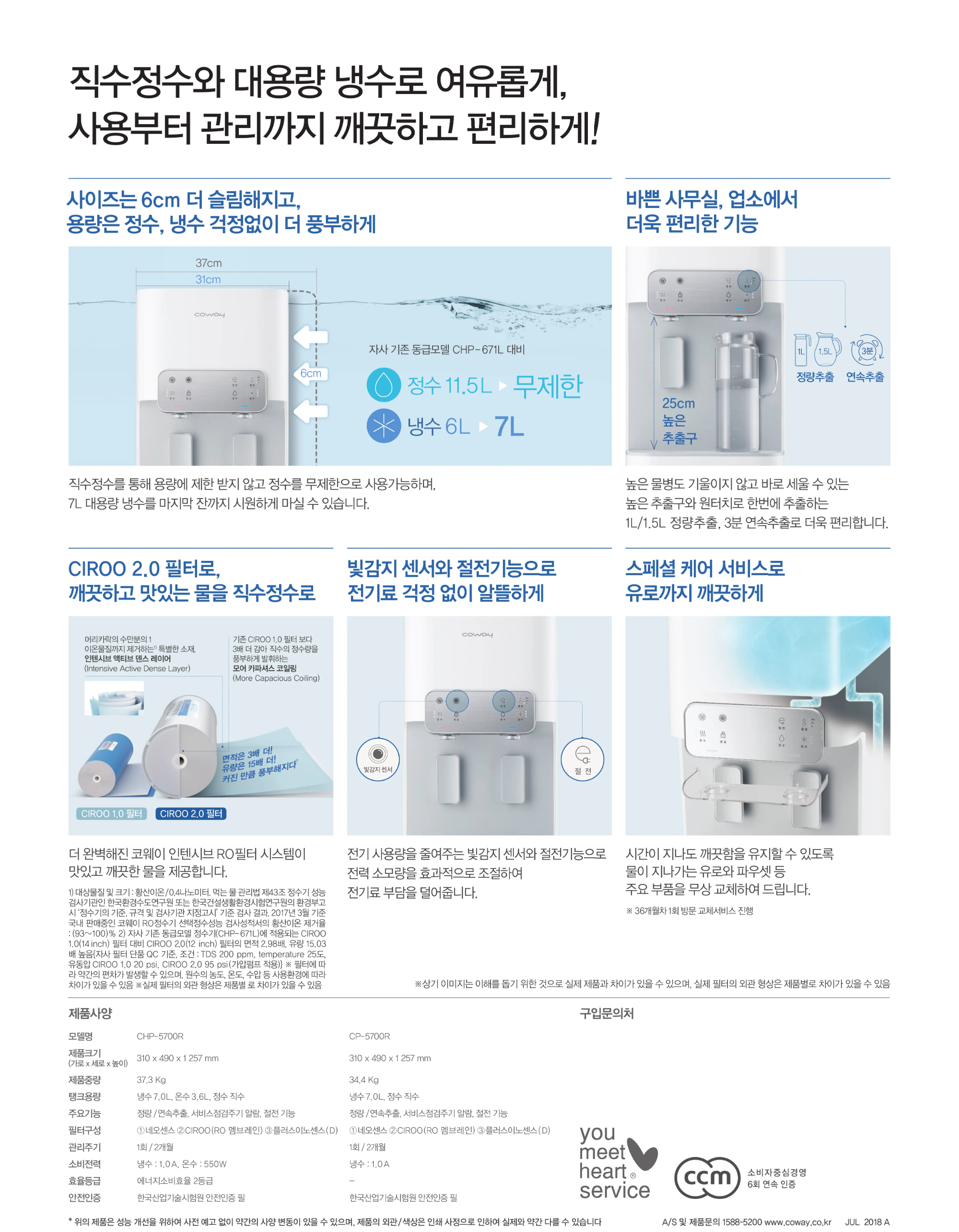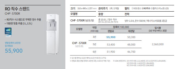 코웨이 대용량 RO 스탠드 정수기 (CHP-5700R)