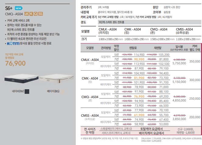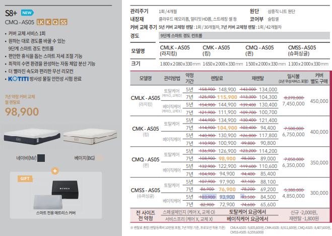 ◦ 7년 커버 교체형 렌탈 시: 42개월 차에 1회 제공.